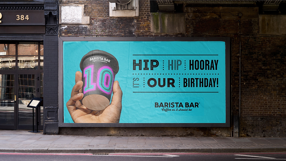 Celebrate ten years of Barista Bar! Design a concept that celebrates this milestone and reflects Barista Bar’s upbeat, playful and optimistic tone.
